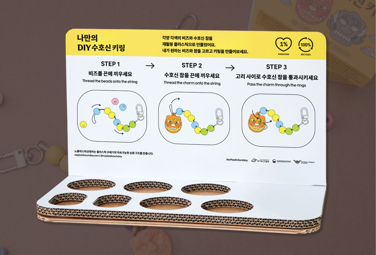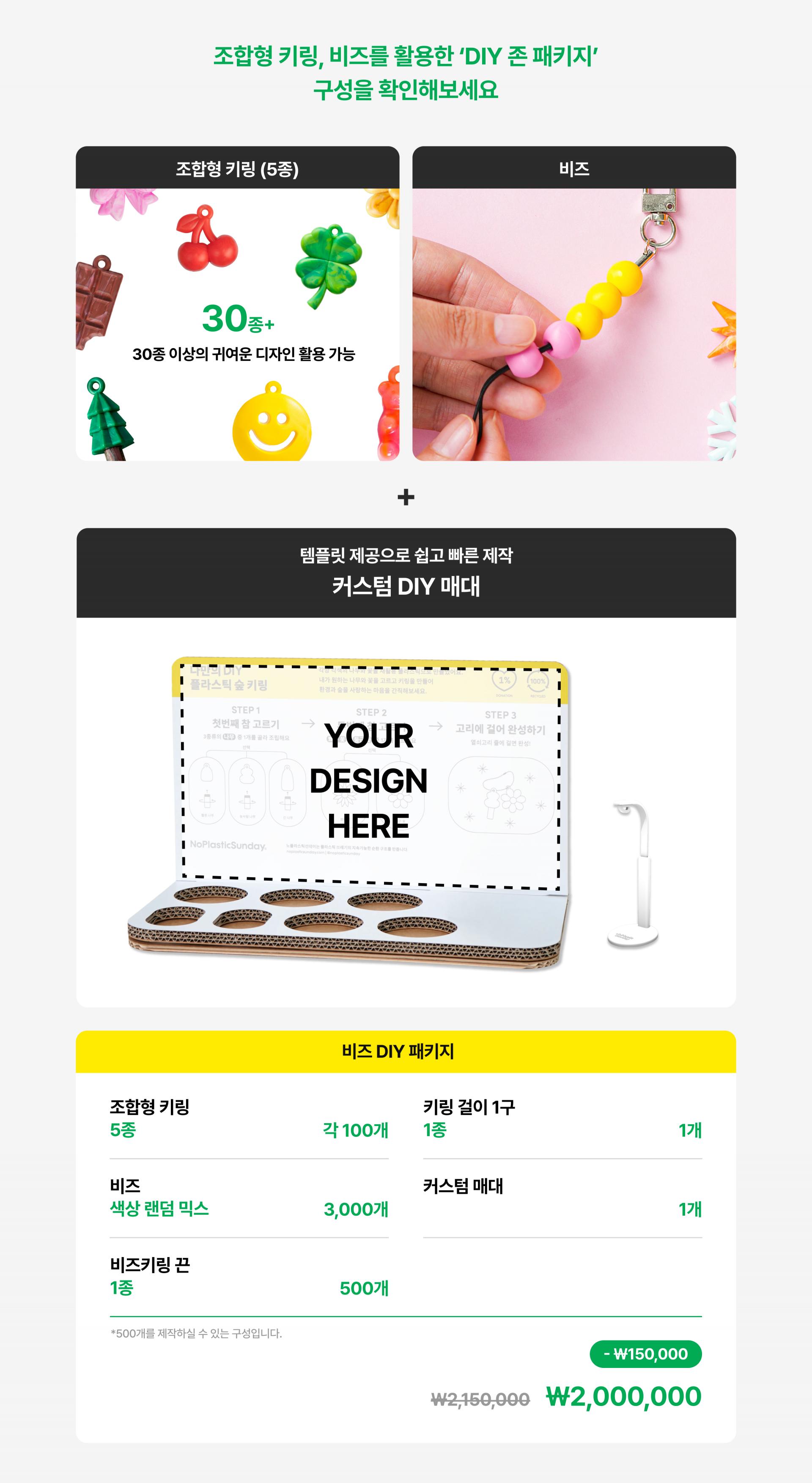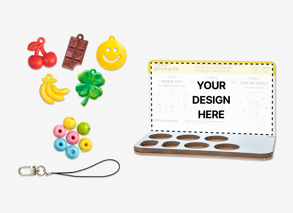 재활용플라스틱 비즈와 조합형 키링을 활용해 500개의 키링을 제작할 수 있는 DIY 패키지 상품입니다.