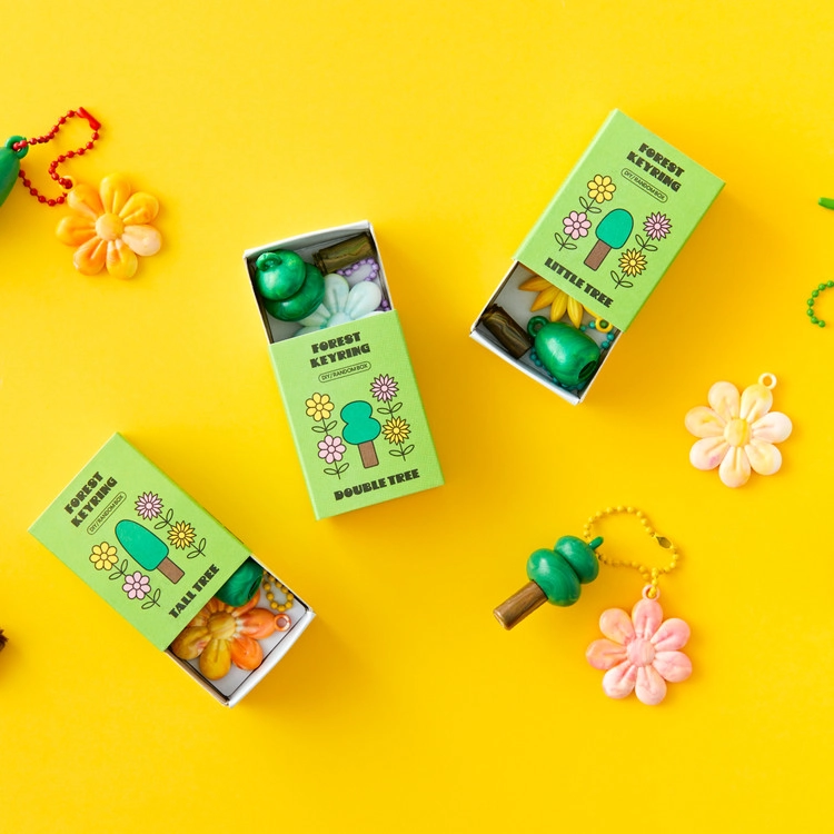• 어떤 제품인가요? ‘DIY 숲 키링 랜덤 박스’는 재활용 플라스틱으로 만든 작은 나무·꽃 참을 선택해 직접 조립하는 체험형 키링 제품입니다.